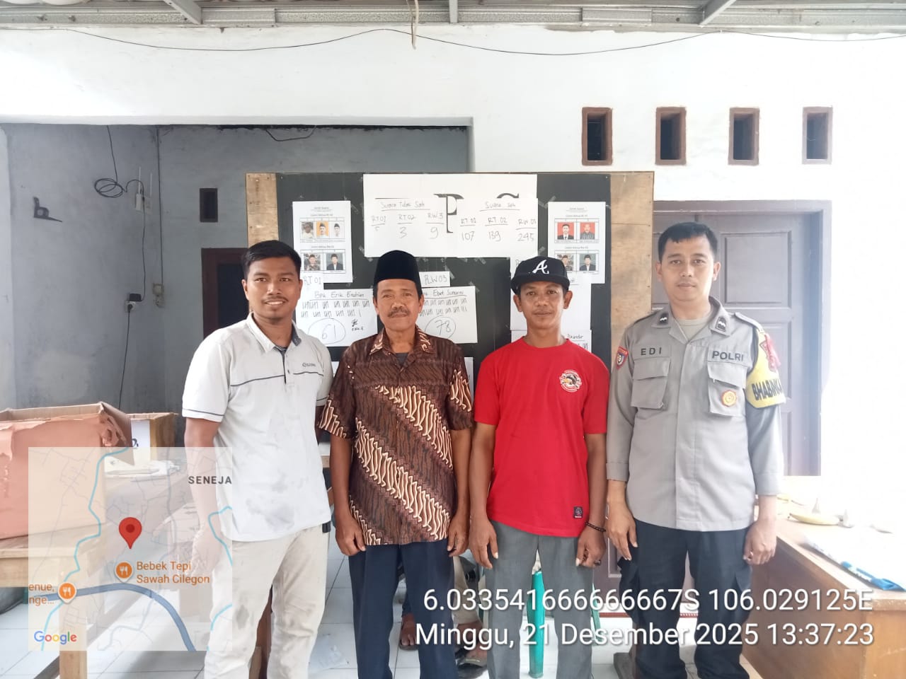 Cilegon - Bhabinkamtibmas Kelurahan Tamanbaru Polsek Ciwandan Polres Cilegon Polda Banten AIPDA Ediyanto menghadiri pemilihan Ketua RW 003 Lingkungan Kubang Lesung kelurahan Tamanbaru Kecamatan Citangkil Kota Cilegon, Minggu (21/12/2025).Kapolres Cilegon Polda Banten AKBP Dr. Martua Raja Taripar Laut Silitonga melalui Kapolsek Ciwandan Polres Cilegon Polda Banten KOMPOL Andi Suherman ditempat terpisah...