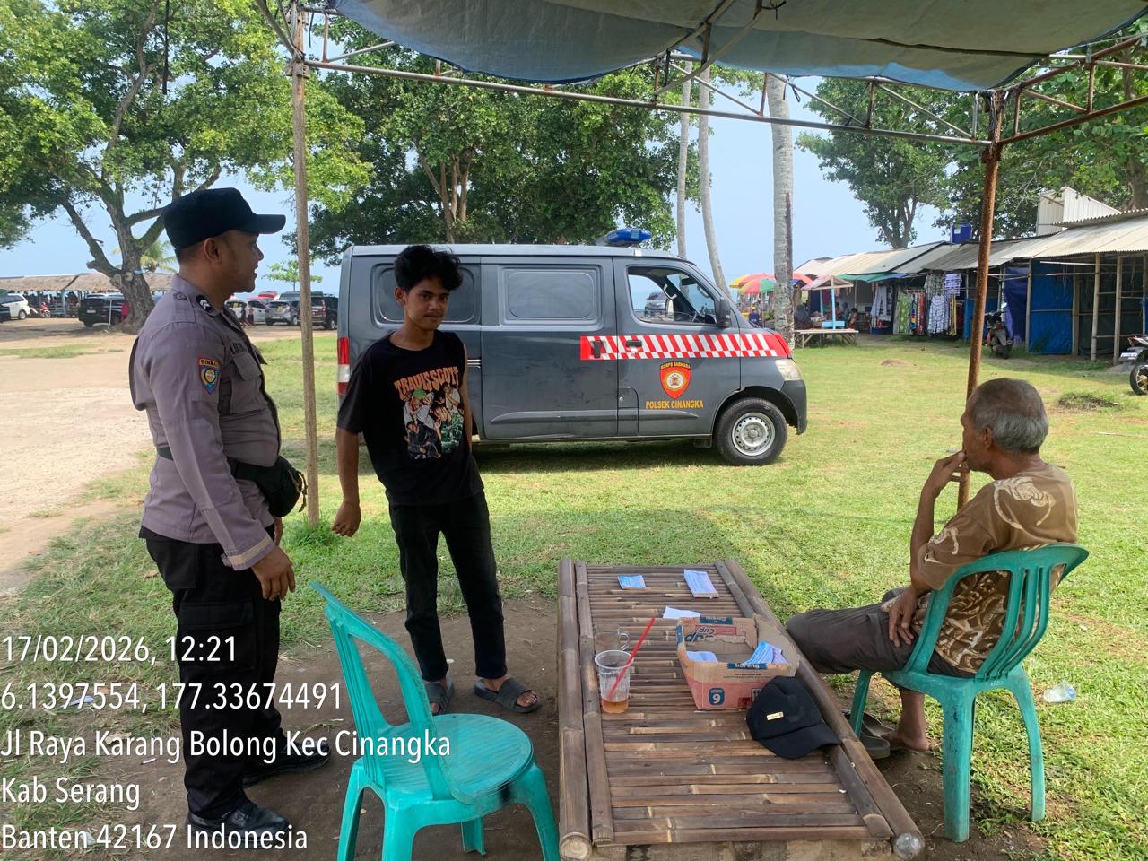 *Pesisir Bangkit Hijau: Kolaborasi Masyarakat Wujudkan Lingkungan Berkelanjutan*_*POLRES CILEGON*_ | Polsek Cinangka Polres Cilegon Polda Banten melaksanakan kegiatan patroli Serta memberikan Himbauan kepada pengunjung pantai yang berwisata dan Sambang kepada petugas penjaga pantai dan juga antisipasi harkamtibmas di Wilayah Hukum Polsek Cinangka Polres Cilegon Polda Banten, Selasa (17/02/2026).Pada kesempatan ini...
