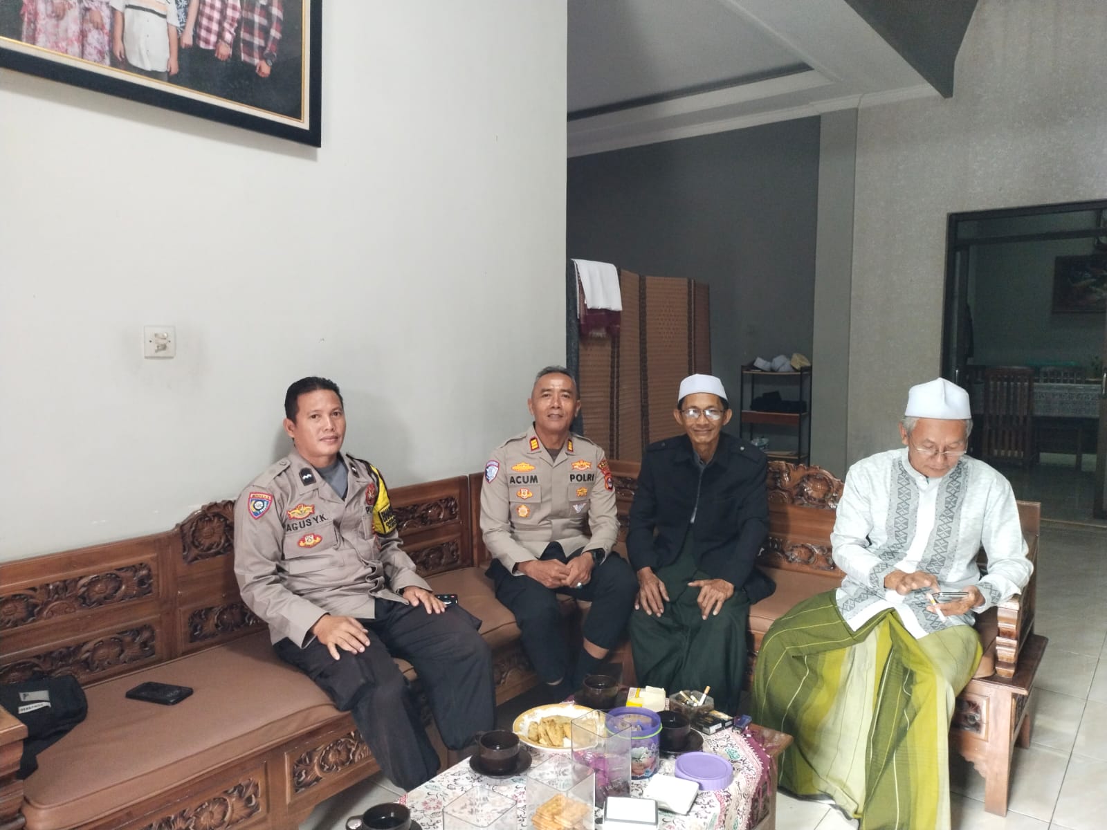 Mancak - Sebagai Pengemban Fungsi Harkamtibmas, Bhabinkamtibmas Polsek Mancak Polres Cilegon Brigpol Agus Laksanakan Sowan/Silaturahmi Kepada Tokoh Agama Kecamatan Mancak Kab SerangKapolres Cilegon Polda Banten AKBP Dr. Martua Raja Taripar Laut Silitonga, S.H., S.I.K., M.Si. melalui Kapolsek Mancak Polres Cilegon Polda Banten AKP Acum Sutarlia menyampaikan bahwa “Polri sebagai pengemban fungsi Harkamtibmas harus terus bersinergi dan merangkul...