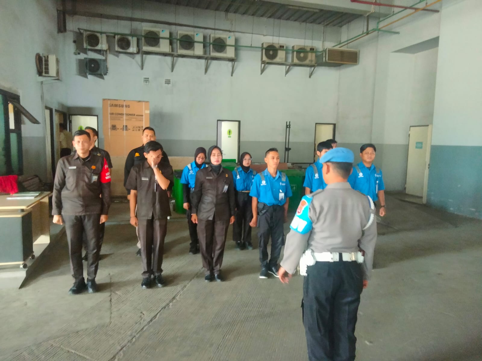 Personel Kskp Merak Polres Cilegon Polda Banten Sampaikan Pesan Kamtibmas Kepada Security kawasan Pelabuhan Merak.