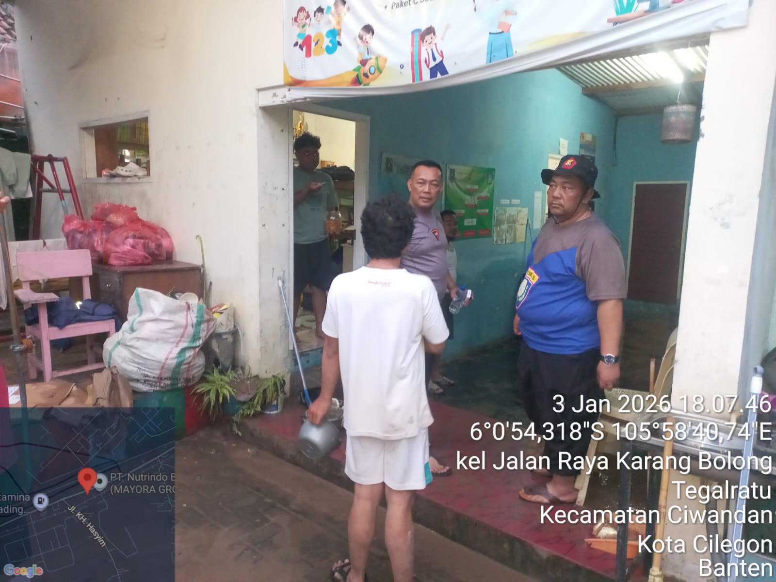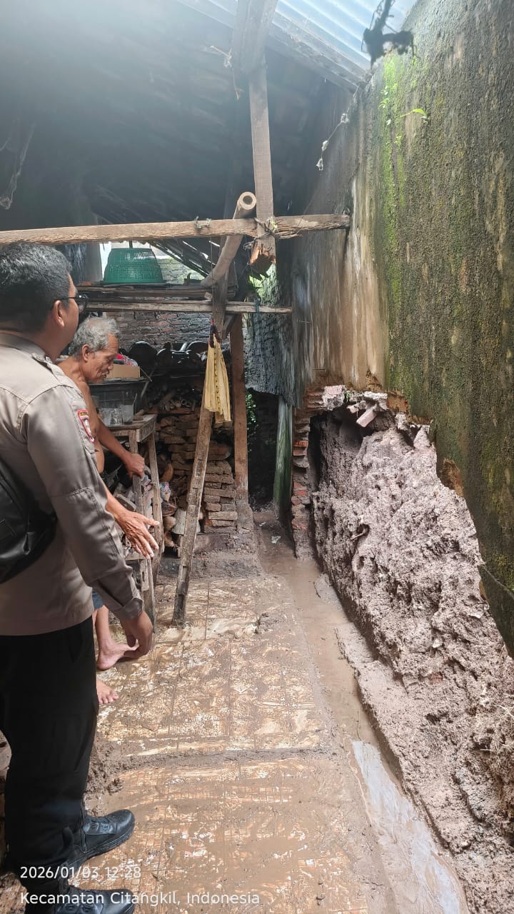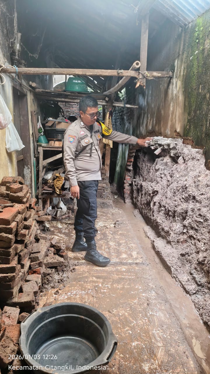 Cilegon - Bhabinkamtibmas Kel. Samangraya, BRIPKA MARISCO, S.H., lakukan monitoring wilayah pasca hujan lebat di Link. Kalentemu Timur Rt 04/05 dan Link. Warung Juet Rt 01/02, Samangraya, Citangkil. Sabtu (03/01/2026).Hasil monitoring:1. Rumah Sdr. Arman Maulana (yatim piatu, 1 jiwa) rubuh tembok kamar tengah. Kondisi rumah tua, tiang belum pakai sloof besi,...