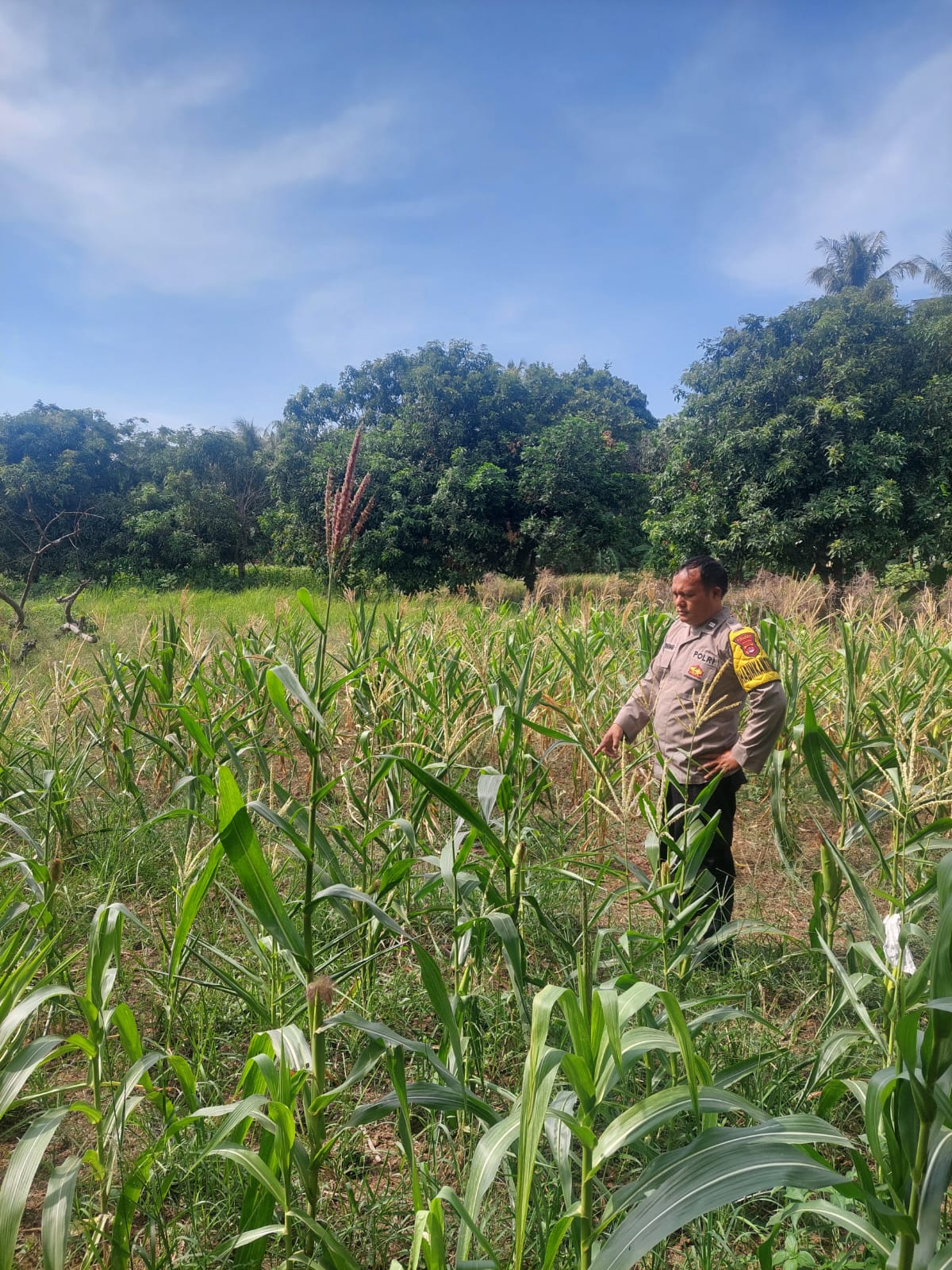 Dukung Ketahanan Pangan, Bhabinkamtibmas Lakukan Monitoring Lahan Jagung Warga