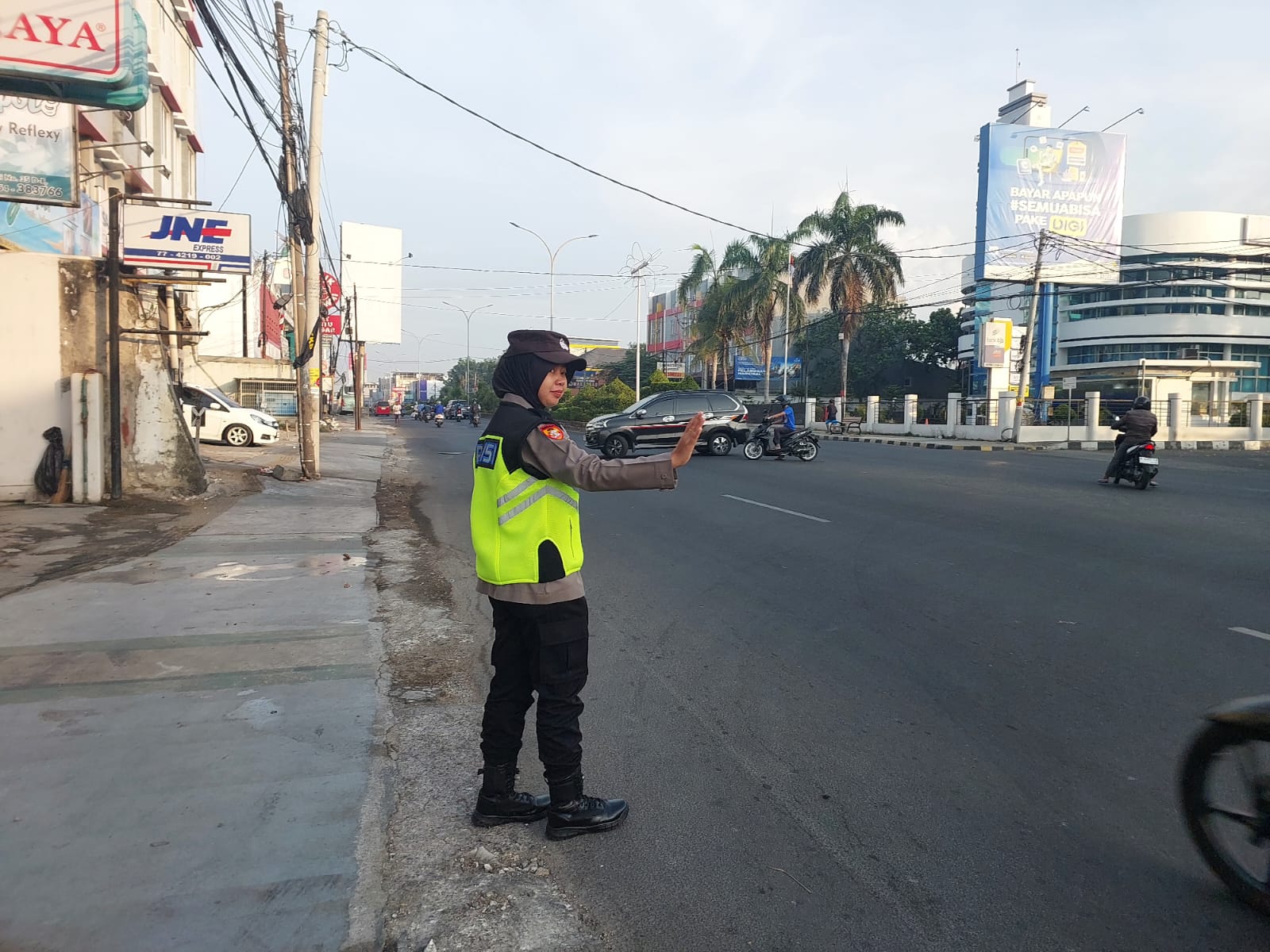 Senin Pagi, Personel Sium Polres Cilegon Amankan Simpang Jombang dari Kemacetan