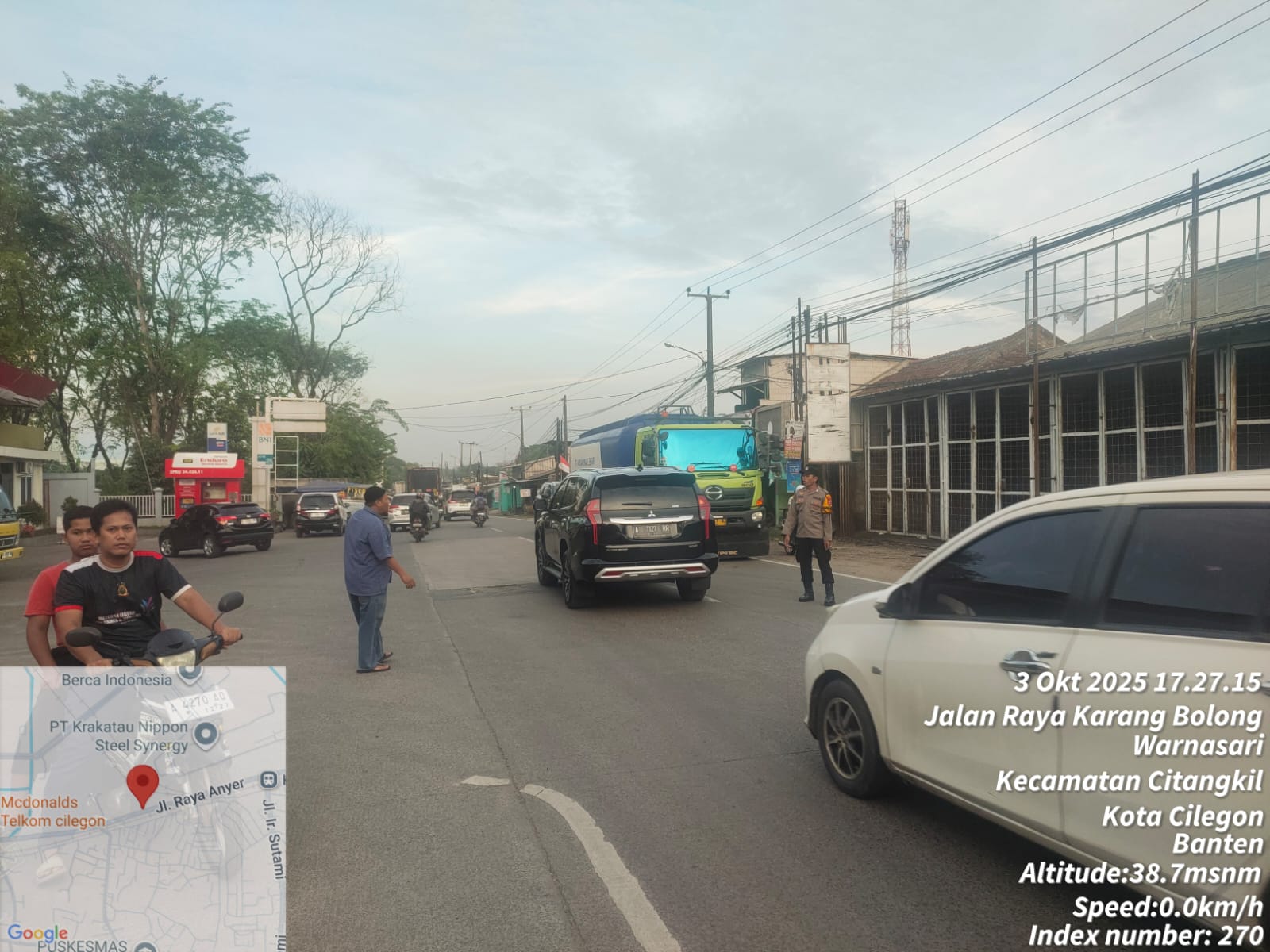 Cilegon - Dalam Mewujudkan Aksi Nyata Pelayanan Kepada Masyarakat,Personil Polsek Ciwandan Polres Cilegon Polda Banten Laksanakan Strong Poin Pengaturan Lalu-lintas,Jum’at (03/10/2025).
