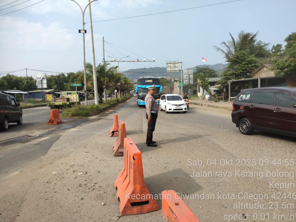 Cilegon - Pada Weekend kali ini Personil Unit Lantas Polsek Ciwandan Polres Cilegon Polda Banten melaksanakan pengaturan lalu lintas di Simpang JLS tepatnya di Pertigaan depan PT. Semen Indonesia Demi Kelancaran Arus Lalu-lintas Wisata, Sabtu (04/10/2025).