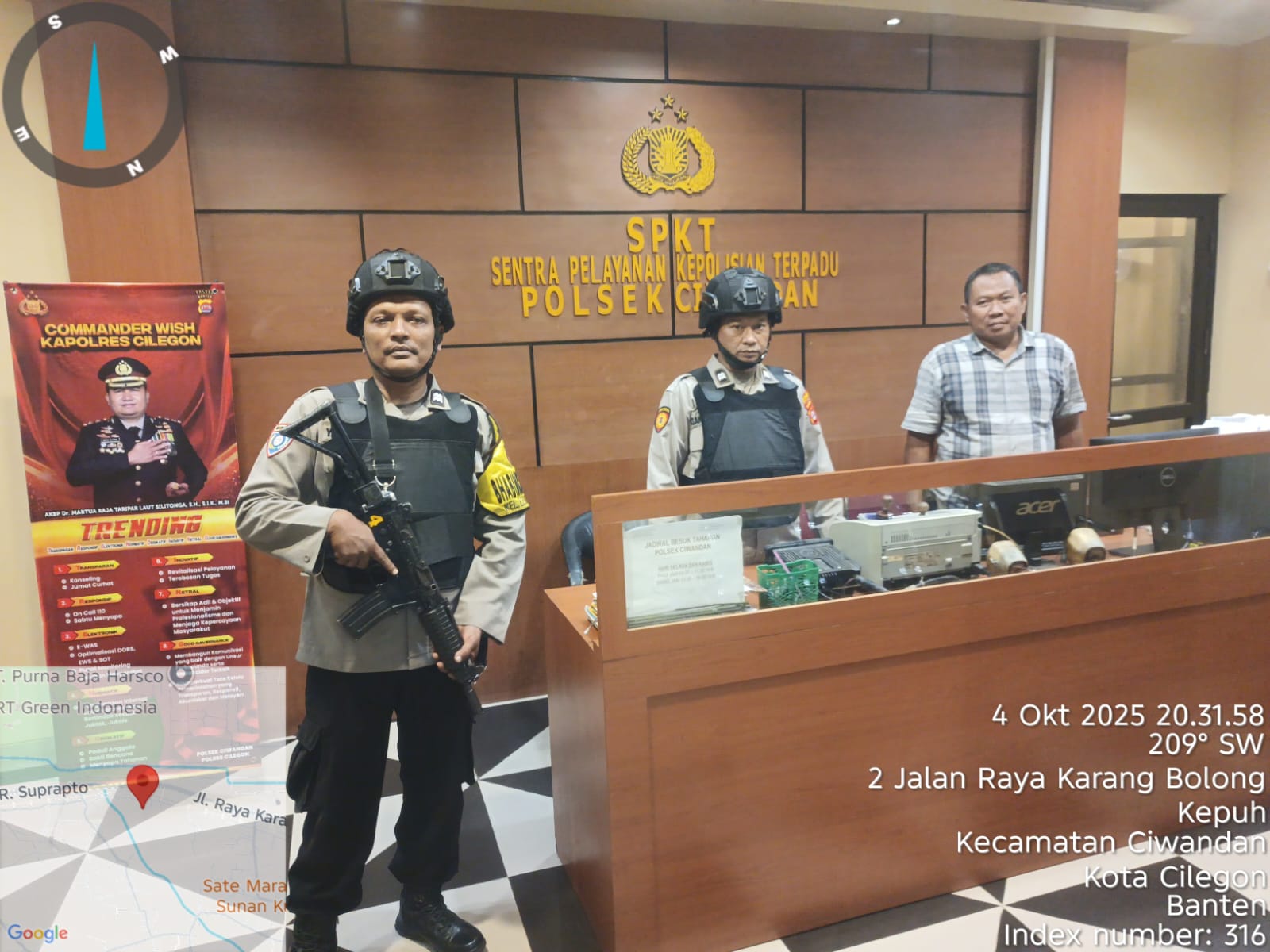 Cilegon - Dalam Kesiap Siagaan dan Memperketat Penjagaan Mako (Markas Komando), Personil Polsek Ciwandan Polres Cilegon Polda Banten melaksanakan Sistem Pengamanan Markas Komando (Sispam Mako), Sabtu (04/10/2025).