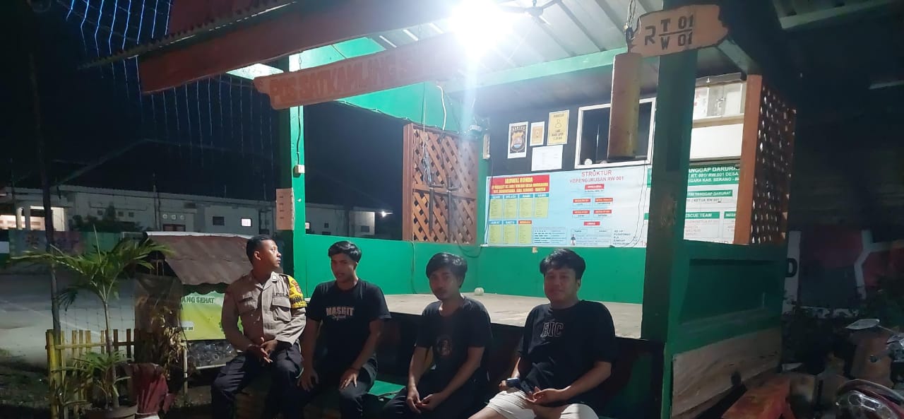 Cilegon ~ Dalam upaya menjaga situasi kamtibmas tetap kondusif, Kanit Samapta dan Bhabinkamtibmas Polsek Bojonegara Polres Cilegon Polda Banten,  Ipda Yudi dan Bripka Zenal melaksanakan kegiatan kontrol dan pemantauan ronda malam,di sejumlah pos ronda warga yang berada di wilayah binaannya, Minggu (05/10/2025).