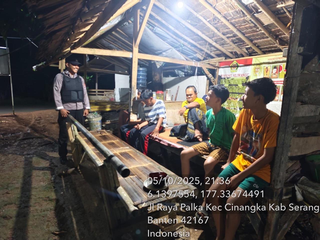 *Polres Cilegon* || Personil Bhabinkamtibmas Polsek Cinangka melaksanakan Program Komandan Wish Kapolda Banten RONDA SATKAMLING menyampaikan komunikasi dengan Petugas Siskamling agar berperan aktif dalam menciptakan Harkamtibmas yang aman dan Kondusif, Senin (06/10/2025).