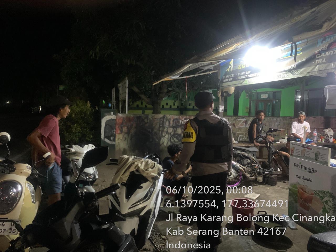 -*POLRES CILEGON*-Polda Banten. Dalam rangka Menjaga situasi kamtibmas kondusif mencegah terjadinya gangguan Kamtibmas Premanisme, Kriminalitas di wilayah Personil Piket Polsek Cinangka mencegah dan Menekan Para Pelaku kejahatan dengan Patroli Blue Light yang di Lakukan Polsek Cinangka gencar Patroli Blue Light dini hari di Wilkum Cinangka Kab Serang . Senin (06/10/2025)