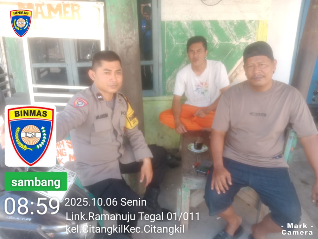 Cilegon -  Bhabinkamtibmas Polsek Ciwandan Polres Cilegon Polda Banten Melalui Sambang Dialogis menjaga kamtibmas selalu kondusif dan aman serta untuk mengetahui situasi dan kondisi terkini yang ada di Daerah binaannya,Sekaligus sebagai sarana silaturahmi dengan berbagai elemen yang ada di masyarakat, Senin (06/10/2025).