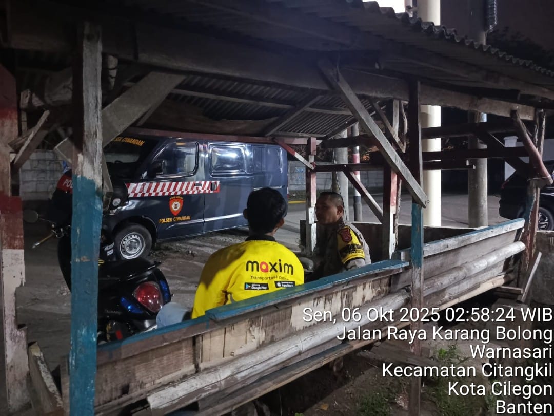 Cilegon - Polsek Ciwandan Polres Cilegon Polda Banten kembali menunjukkan komitmennya dalam menciptakan keamanan dan ketertiban masyarakat (kamtibmas) yang kondusif melalui Kegiatan Patroli Malam, Kegiatan ini dilakukan secara rutin dengan berkeliling di daerah hukum Polsek Ciwandan, Senin (06/10/2025).