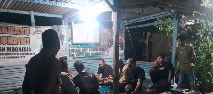 Kunjungi Pos Ronda Warga Personil Bhabinkamtibmas Polsek Purwakarta Berbincang bersama Warga dan Pastikan Kamtibmas kondusif
