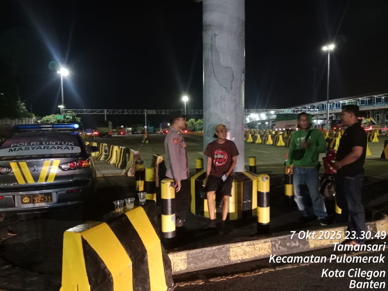 Cilegon - Personil Polsek Kskp Merak Polres Cilegon melaksanakan patroli di kawasan pelabuhan merak memberikan rasa aman dan damai, Rabu (08/10/2025)