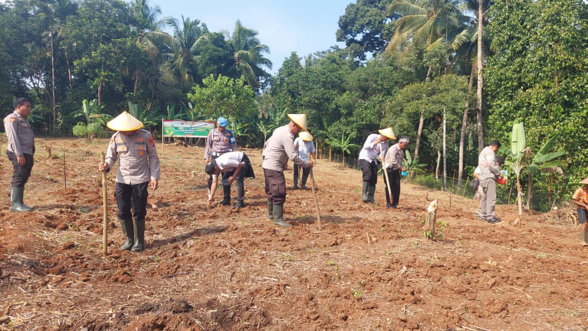 Penanaman Jagung serentak Kuartal IV Seluruh Indonesia di lahan milik kelompok tani Bpk. Maman Rt. 01/01 Kp. Macute Kel. Angsana Kec. Mancak-Serang daerah hukum Polres Cilegon.