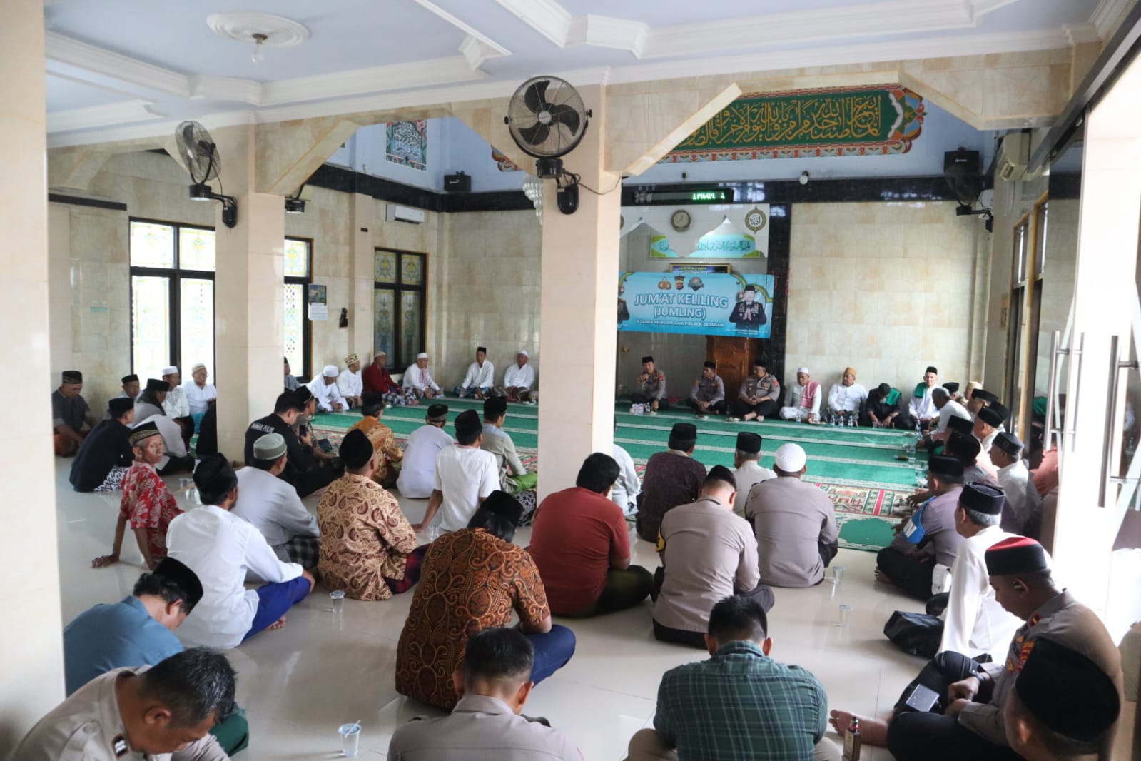 Cilegon – Dalam rangka mempererat hubungan antara Polri dan masyarakat, Kapolres Cilegon Polda Banten, AKBP Dr. Martua Raja Taripar Laut Silitonga, S.H., S.I.K., M.Si., melaksanakan kegiatan silaturahmi Jum’at Keliling (Jumling) di Masjid Al-Mutahidin, Blok Bango, Lingkungan Leuweung Sawo, Kelurahan Kotabumi, Kecamatan Purwakarta, Kota Cilegon. Kegiatan berlangsung hangat dan penuh kebersamaan usai pelaksanaan ibadah salat Jumat. Jumat (10/10/2025).