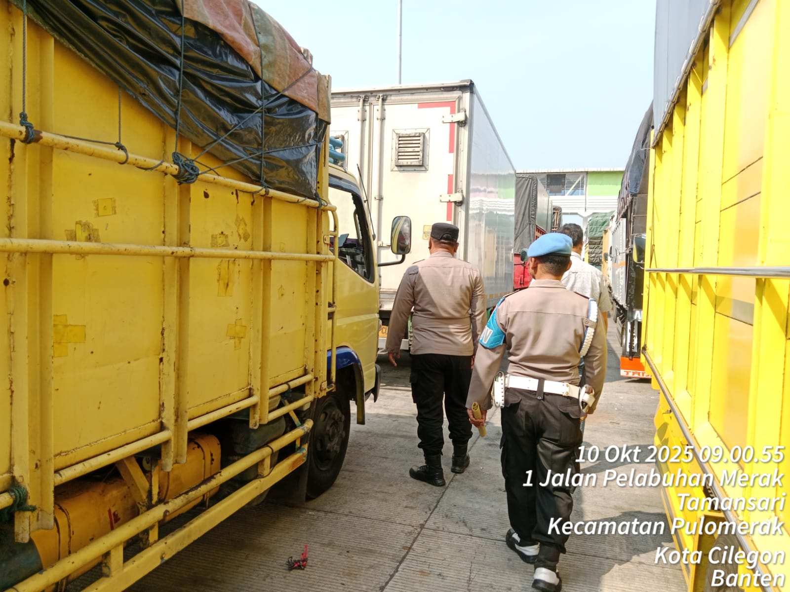 Personil Polsek KSKP Merak Sisir Kendaraan Masuk dan Keluar Pelabuhan