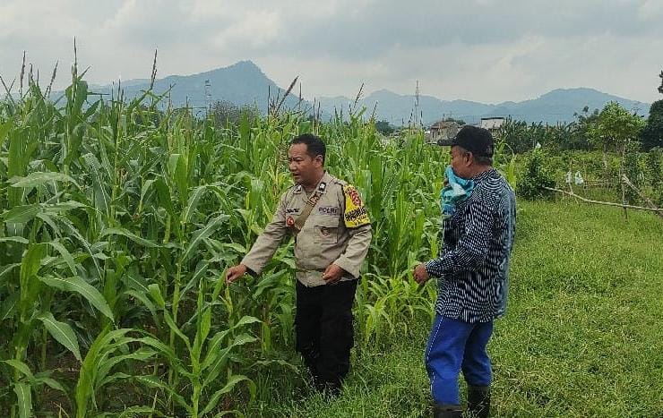 Personil Polsek Anyar Bersama Petani Cek Lahan Pertanian Tanaman Jagung Setempat