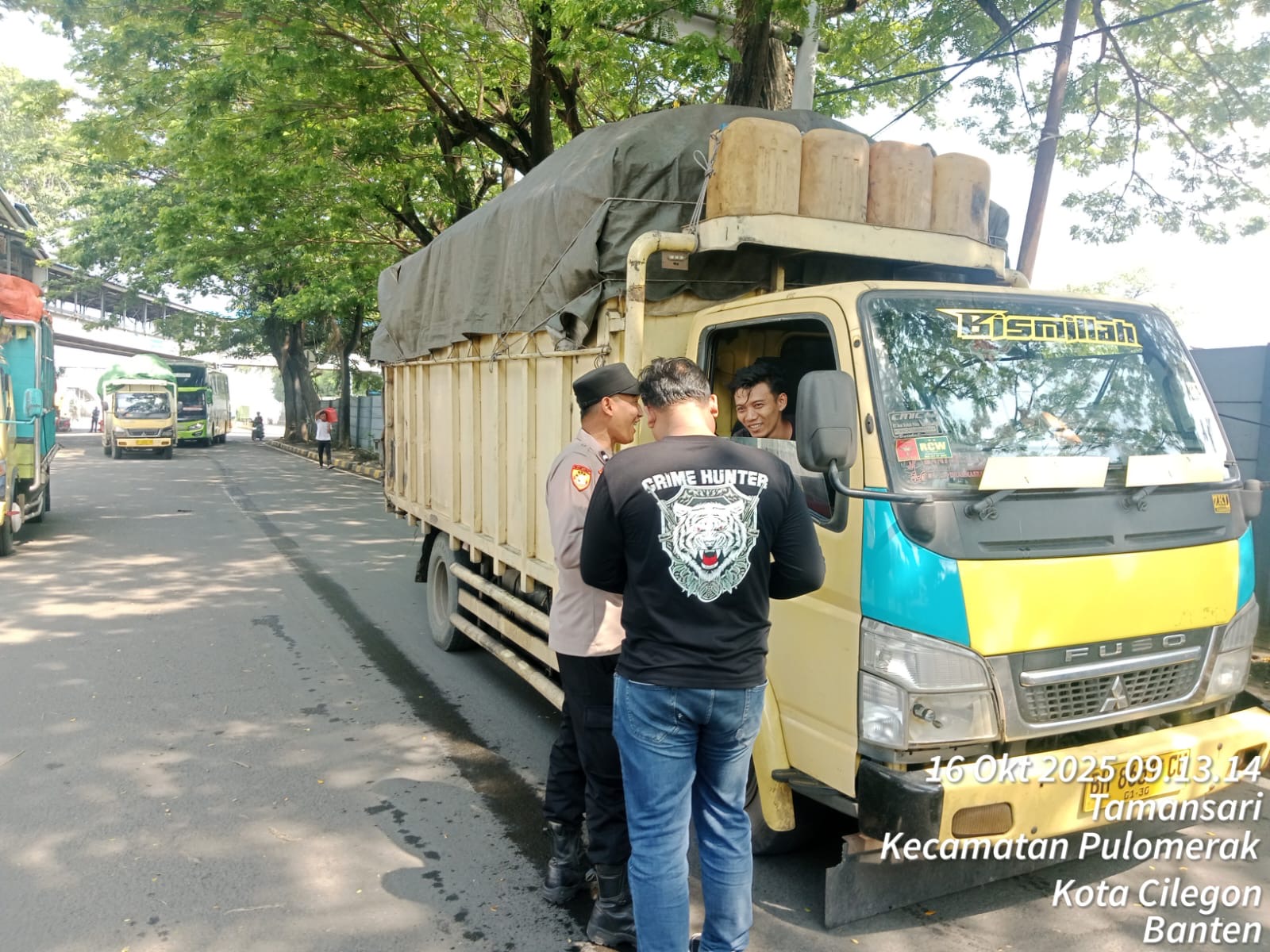Pimpin Langsung Razia, Kapolsek Kskp Merak Periksa Kendaraan dari Sumatra dan Jawa