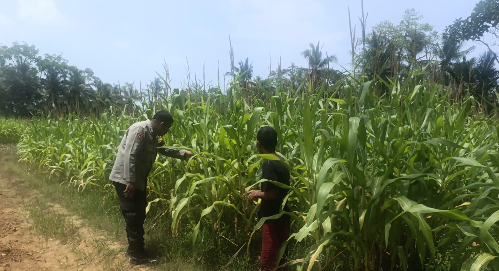 Bhabinkamtibmas Polsek Anyar Monitoring Tanaman Jagung Bersama Dengan Poktan