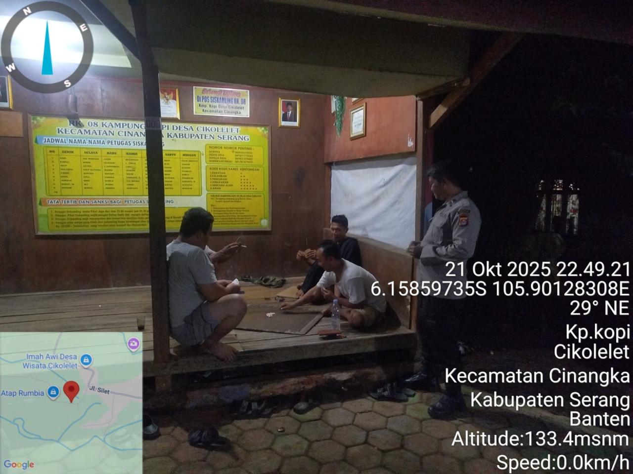 Kapolres Cilegon Polda Banten AKBP Martua Raja Taripar Laut Silitonga melalui Kapolsek Cinangka Polda Banten IPTU Rusnata menjelaskan dalam menjaga kemanan dan akuntansi lingkungan kami terus tingkatkan kegiatan Patroli menciptakan Rasa aman dengan hadir di tengah tengah masyarakat sehingga dapat meminalisir gangguan Kamtibmas serta menyampaikan Pesan-pesan Kamtibmas Kepada petugas yg melaksanakan kegiatan siskamling di lingkungannya masing-masing.