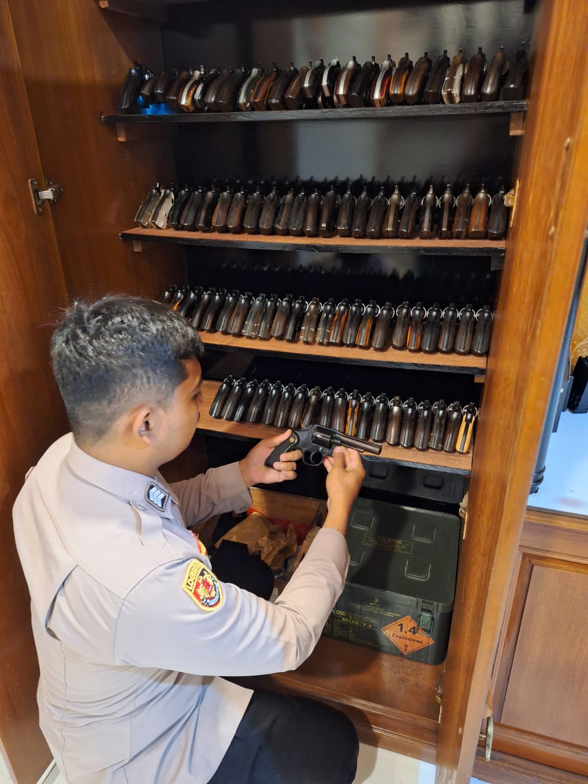 senjata Api Dinas yang ada Digudang Logistik Polres Cilegon,