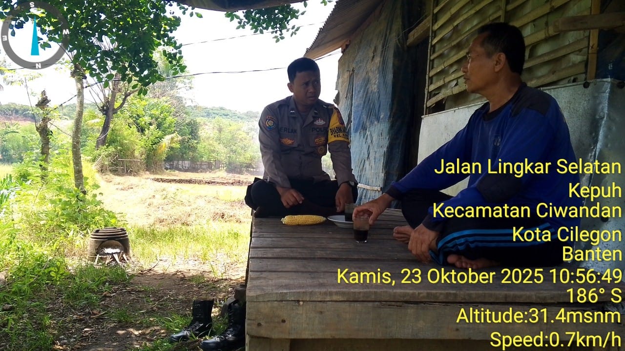 Cilegon - Bhabinkamtibmas Kelurahan Kepuh Polsek Ciwandan Polres Cilegon Polda Banten AIPDA Mere Erlansyah Menyapa warga serta Ajak warga Binaannya untuk berperan aktif jaga keamanan lingkungan serta jalin komunikasi agar tercipta situasi aman di daerah hukum Polsek Ciwandan Polres Cilegon Polda Banten, Kamis (23/10/2025).
