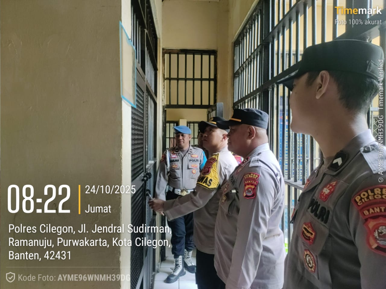 Cilegon,Personel piket Satreskrim Polres Cilegon Polda Banten beserta piket fungsi lainya melakukan pengecekan jumlah narapidana dan ruang di setiap kamar rutan di polres cilegon. Kegiatan ini bertujuan agar terus memonitor keadaan para narapidana di rutan polres cilegon dan menghindari hal-hal yang tidak diinginkan serta mengecek kekuatan setiap ruangan. Jumat (24/10/2025).