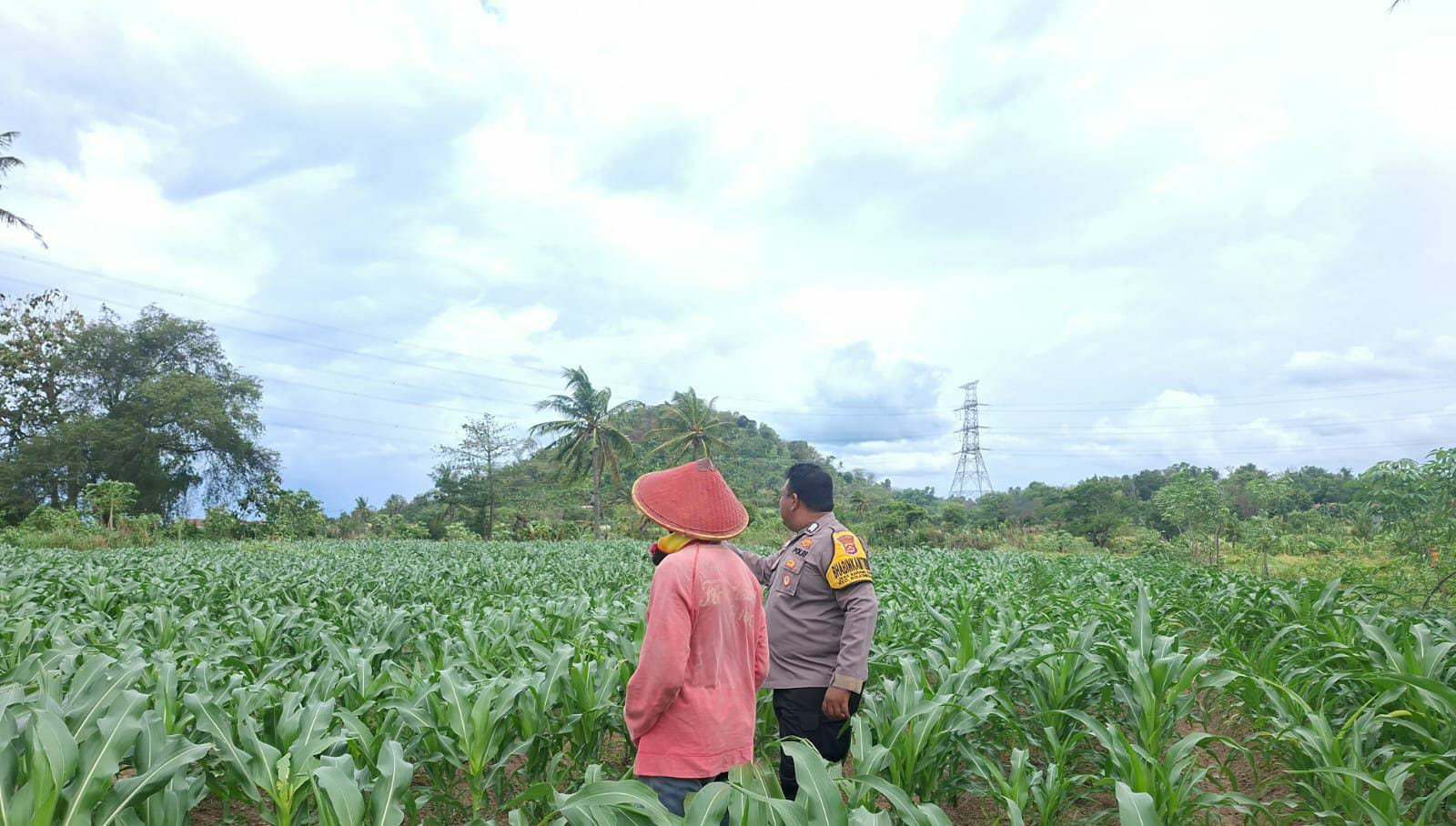 Ketahanan Pangan, Bhabinkamtibmas Ds Karang Kepuh Bripka Tri Handoko Bersama Petani Lakukan Kegiatan Rutin Pengecekan Perkembangan Tanaman Jagung