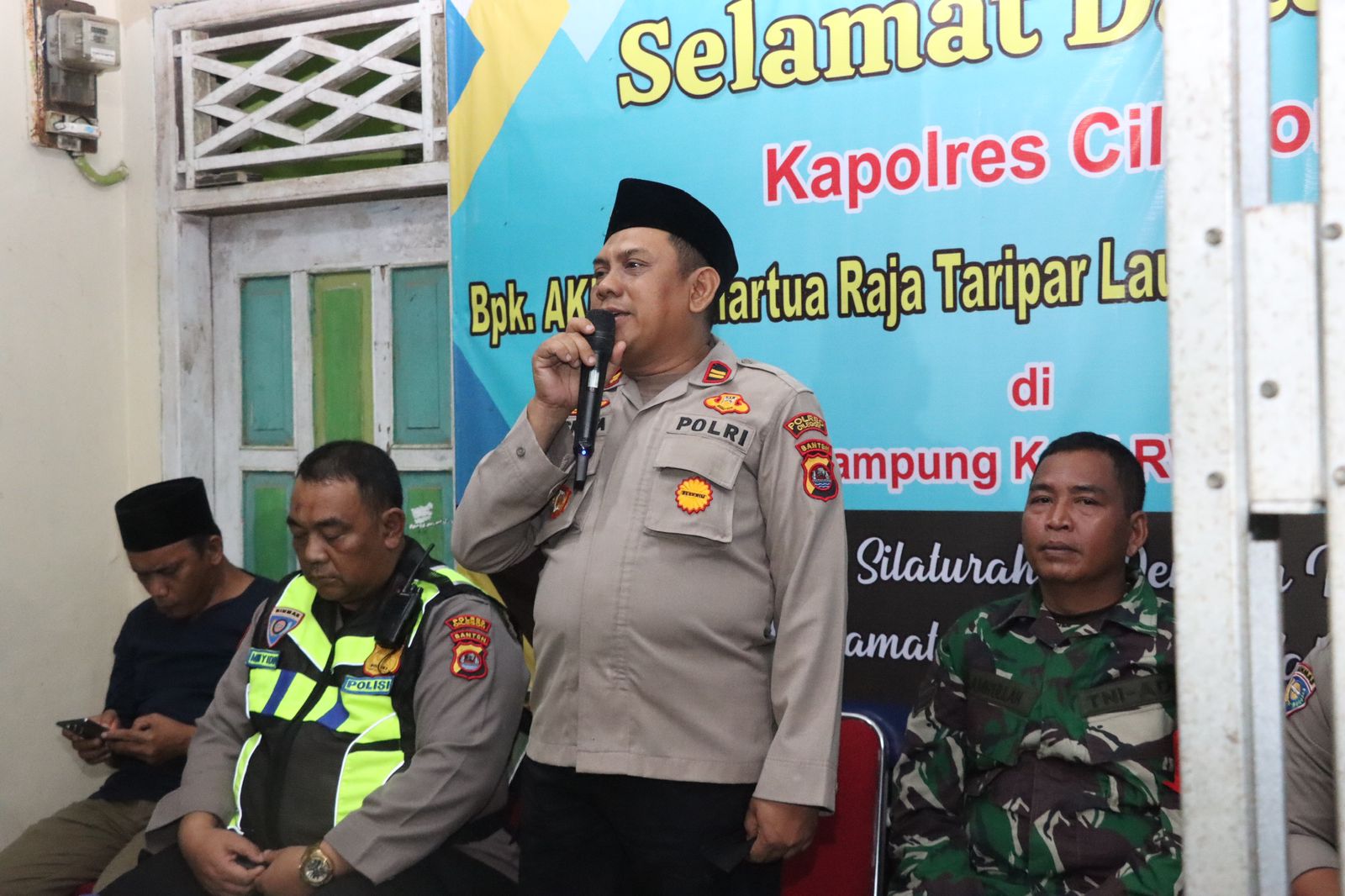Cilegon – Dalam rangka memperkuat kemitraan antara Polri dan masyarakat dalam menjaga keamanan lingkungan, Kapolres Cilegon Polda Banten AKBP Dr Martua Raja Taripar Laut Silitonga S.H., S.I.K., M.Si melalui Kasat Binmas IPTU Muhyidin, S.H., melaksanakan kunjungan ke Pos Kamling Kampung Kopi RT 001 RW 008, Desa Cikolelet, Kecamatan Cinangka, Kabupaten Serang, Sabtu (25/10/2025) malam.