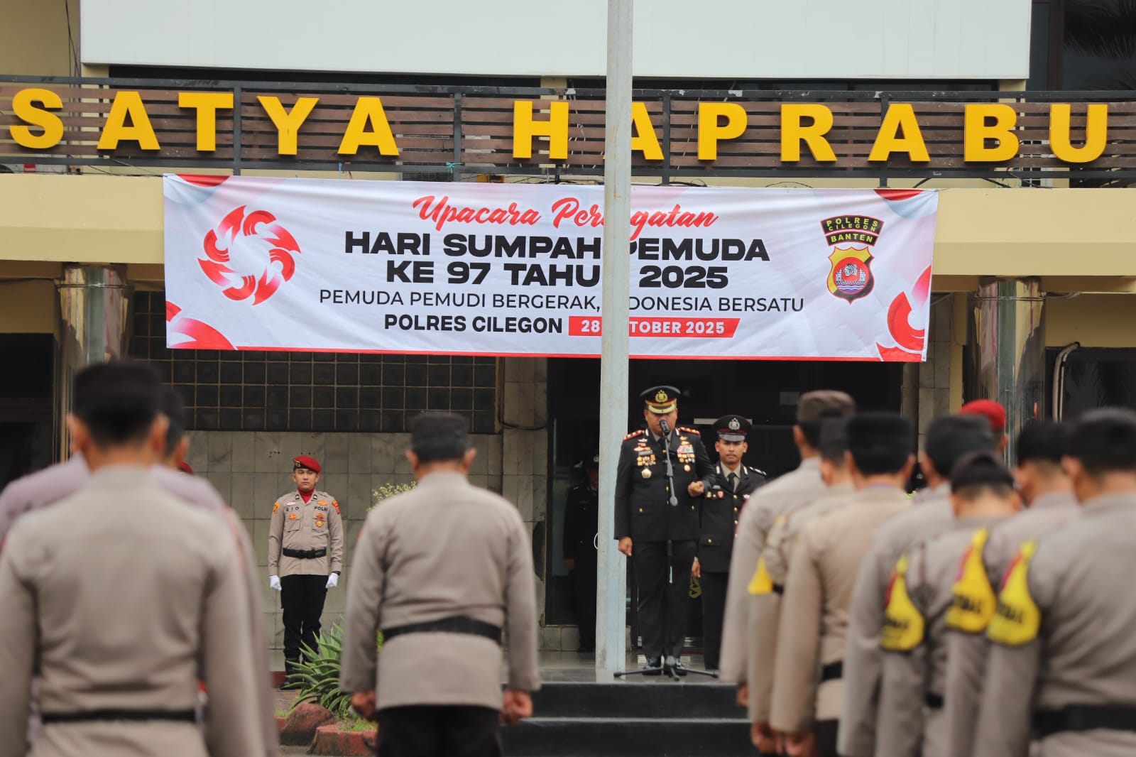 Mengawali amanatnya, Kapolres Cilegon menyampaikan bahwa momentum Hari Sumpah Pemuda adalah pengingat penting tentang semangat persatuan dan perjuangan generasi muda Indonesia. “Sumpah Pemuda bukan sekadar ikrar sejarah, melainkan semangat yang mengikat seluruh anak bangsa untuk bersatu dalam perbedaan,” ujar AKBP Martua.