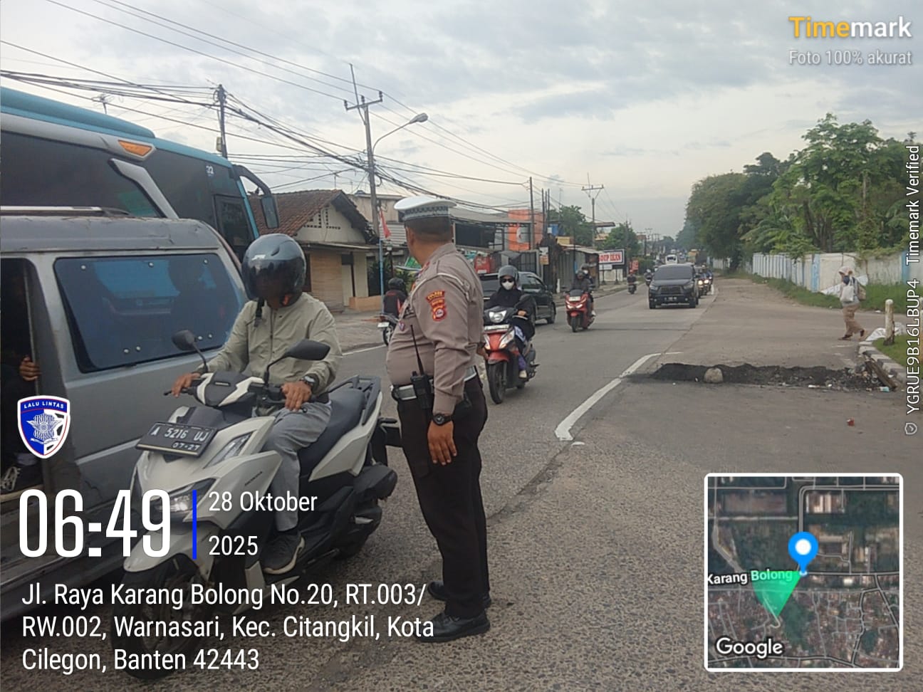 Cilegon - Dalam Mewujudkan Aksi Nyata Pelayanan Kepada Masyarakat,Personil Polsek Ciwandan Polres Cilegon Polda Banten Laksanakan Strong Poin Pengaturan Lalu-lintas, Selasa (28/10/2025).