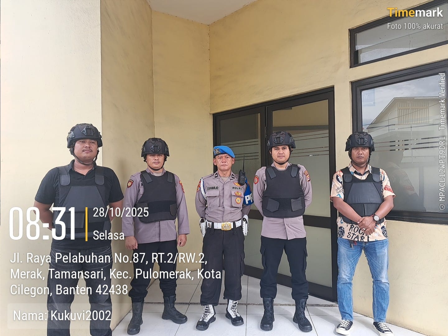 Cilegon - Personel piket jaga Polsek Kskp Merak Polres Cilgon Polda Banten melaksanakan siaga 1 Polsek pelaksanaan Sispam Mako oleh piket siaga dipimpin oleh Kspk Polsek Kskpy Merak Polres Cilegon Polda Banten, Selasa (28/10/2025).