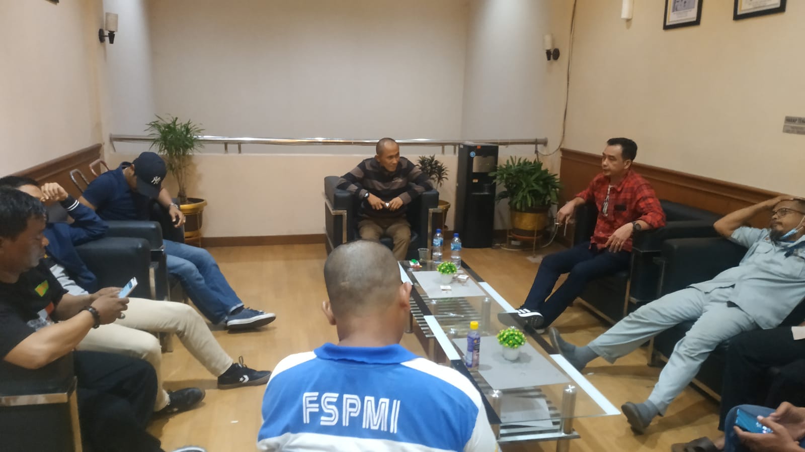 Personil sat intelkam melakukan koordinasi dengan serikat buruh kota cilegon.