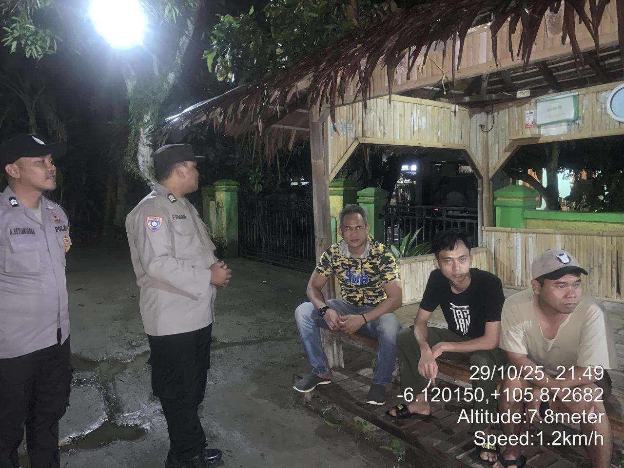 *Polres Cilegon* || Personil Bhabinkamtibmas Polsek Cinangka melaksanakan Program Komandan Wish Kapolda Banten RONDA SATKAMLING menyampaikan komunikasi dengan Petugas Siskamling agar berperan aktif dalam menciptakan Harkamtibmas yang aman dan Kondusif, Kamis (30/10/2025).