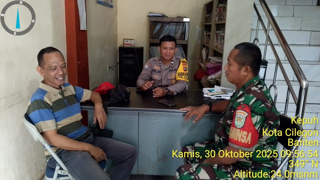Cilegon - Momen kekompakan TNI-Polri ditunjukkan Oleh Bhabinkamtibmas Polsek Ciwandan Polres Cilegon Polda Banten dengan Kegiatan Sambang bersama Babinsa Koramil Ciwandan, moment tersebut ditunjukkan TNI-Polri Dalam Melaksanakan tugas Bersama, Kamis (30/10/2025).