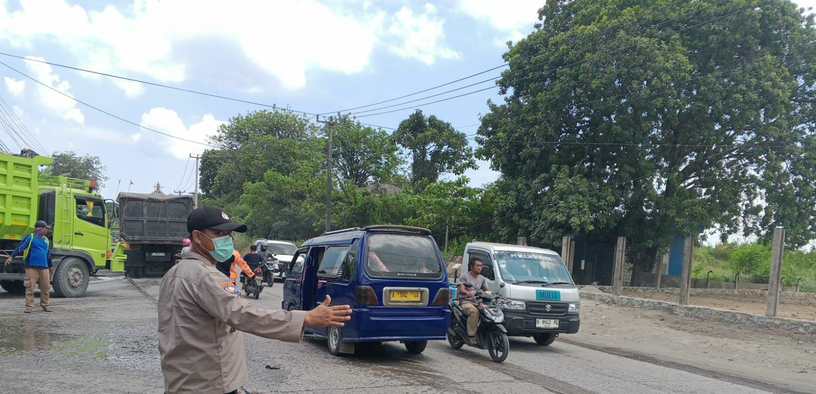 Bripka Susilo Polsek Bojonegara Polres Cilegon Pengaturan lalu lintas Di Persimpangan Bam Bojonegara