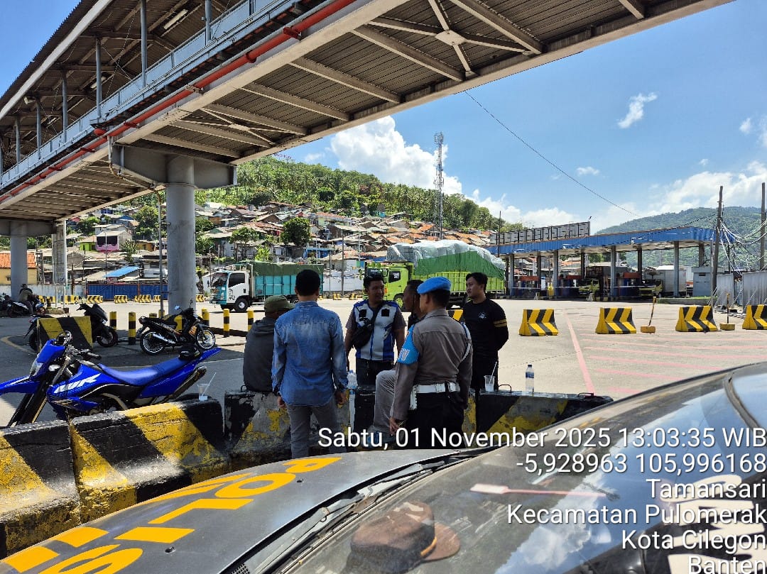 Cilegon - Personel Polsek Kskp Merak Polres Cilegon Polda Banten melaksanakan sambang dan patroli kawasan pelabuhan merak dalam rangka menjaga Harkamtibmas di Kawasan Pelabuhan Merak, Sabtu (01/11/2025).