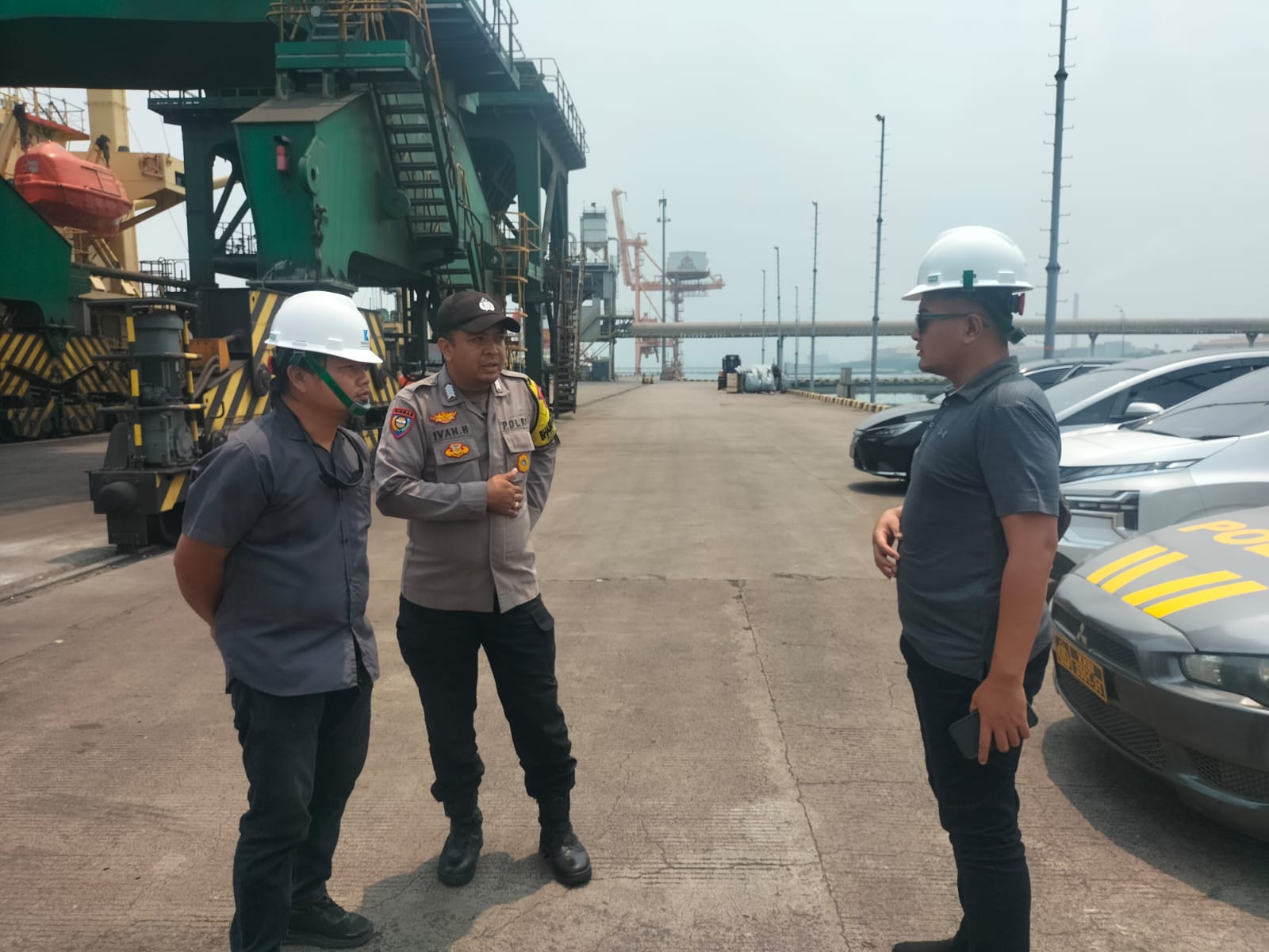 Jalin Silaturahmi, Bhabinkamtibmas Pelabuhan Polsek KSKP Banten berbincang dengan Buruh Pelabuhan