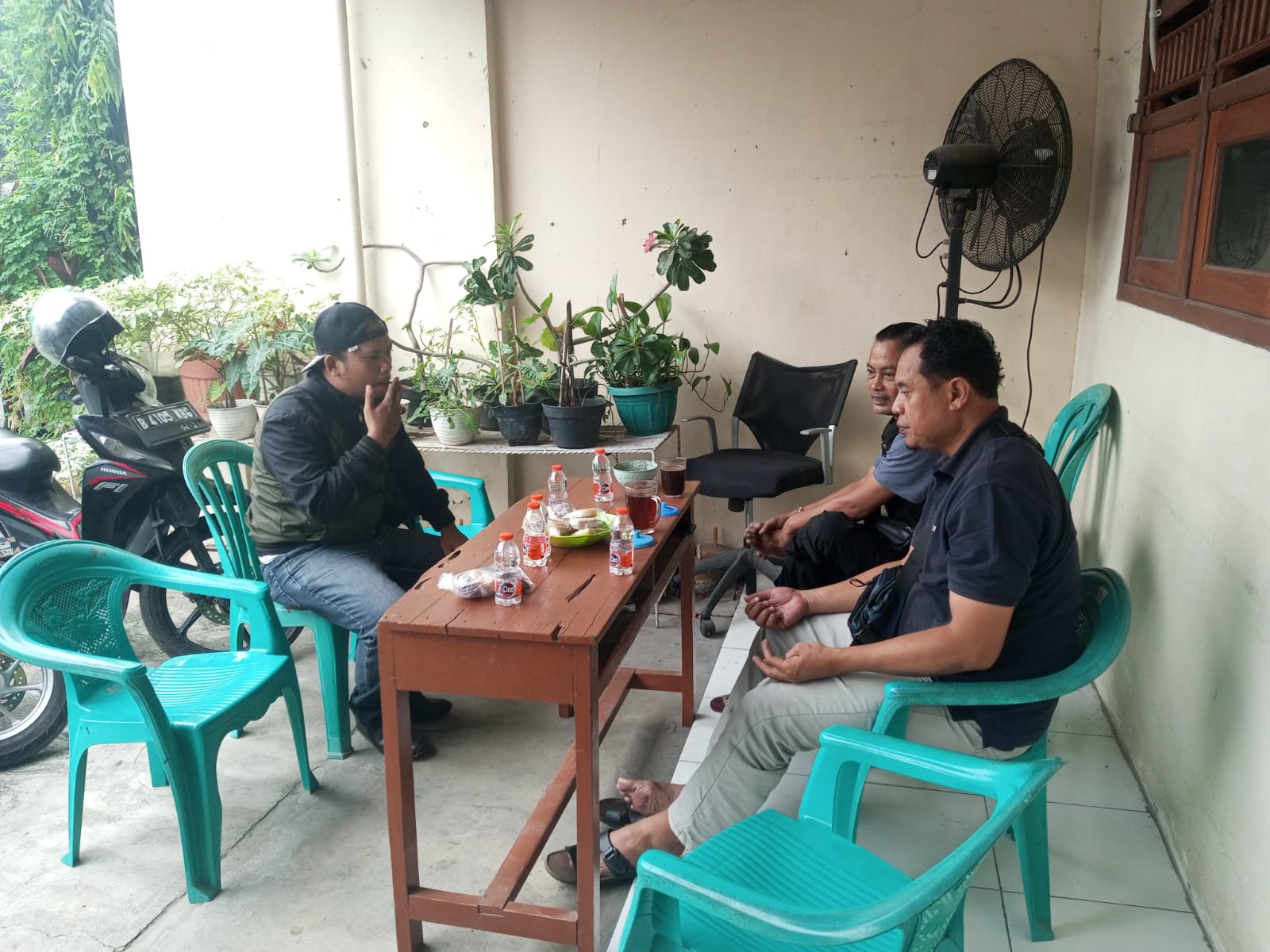 Personil sat intelkam melakukan koordinasi dengan tokoh masyarakat kelurahan bagendung kec. Cilegon kota cilegon.