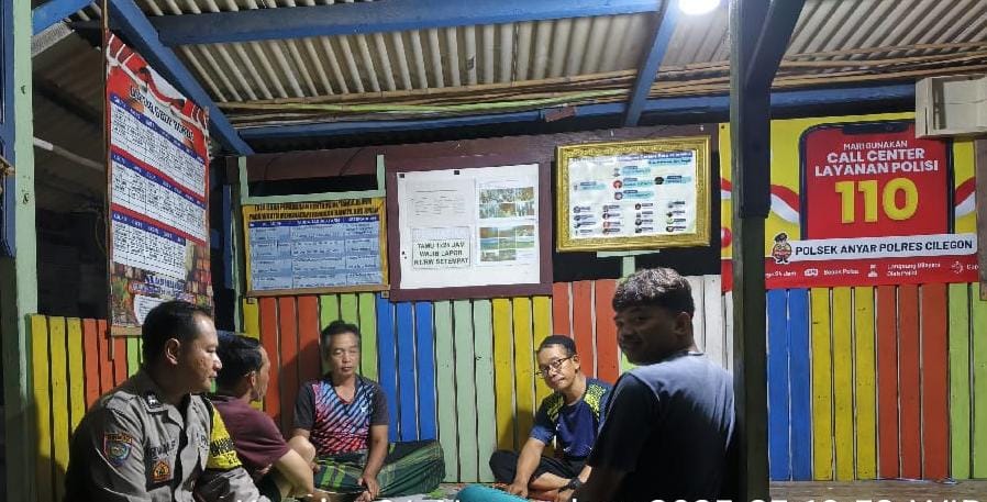 Personel Bhabinkamtibmas Polsek Anyar Polres Cilegon Polda Banten Aiptu Irvan melaksanakan sambang Ronda Siskamling Dalam rangka menjaga Harkamtibmas dan Sebagai bentuk mendukung Program Quick Wins Presisi Polri, Jum'at (07/10).