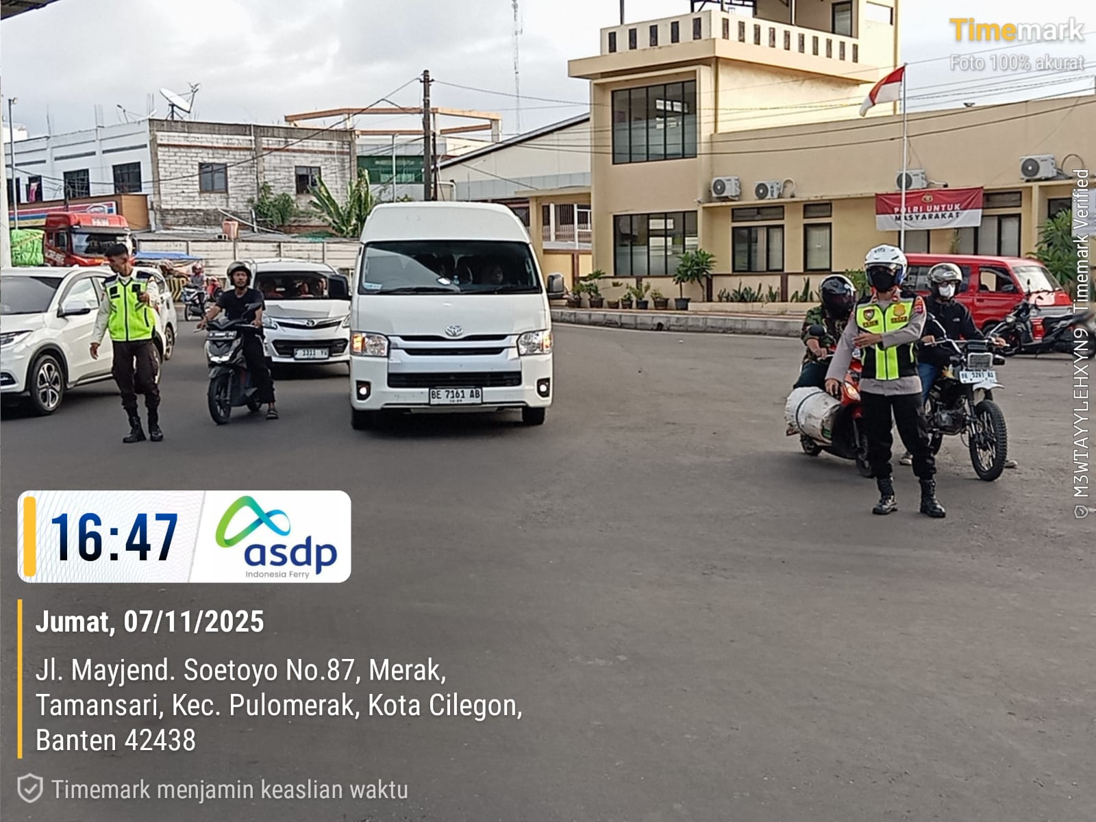 Polsek KSKP Merak Polres Cilegon Pastikan Kelancaran Antrian Penyeberangan ke Bakauheni