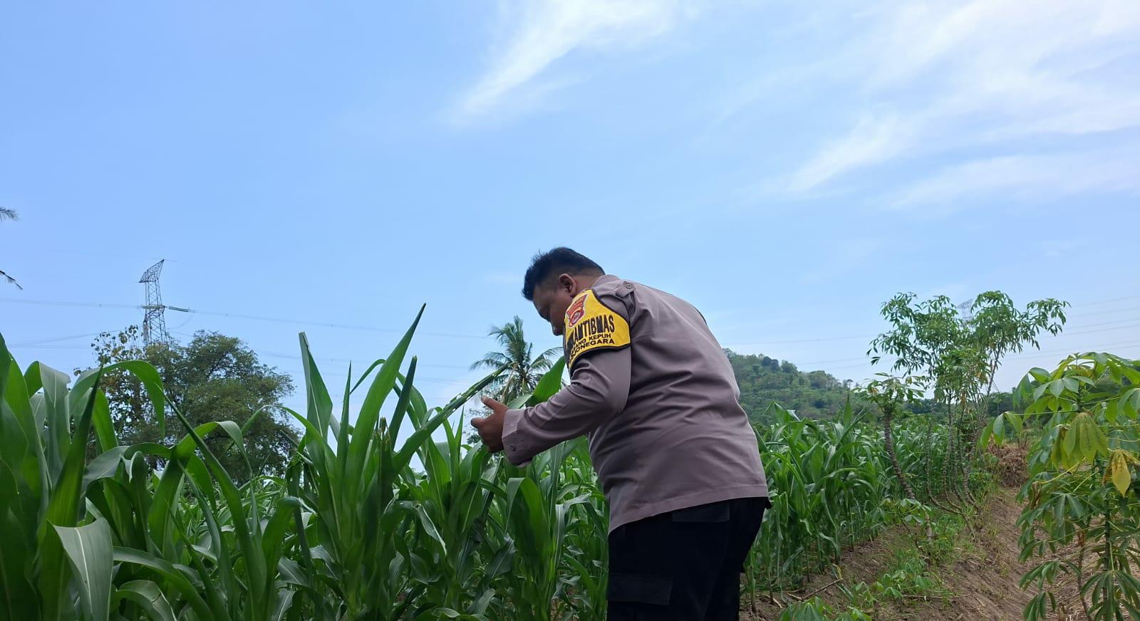 Anggota Bhabinkamtibmas Lakukan Perawatan Tanaman Jagung di Lahan Ketahanan Pangan