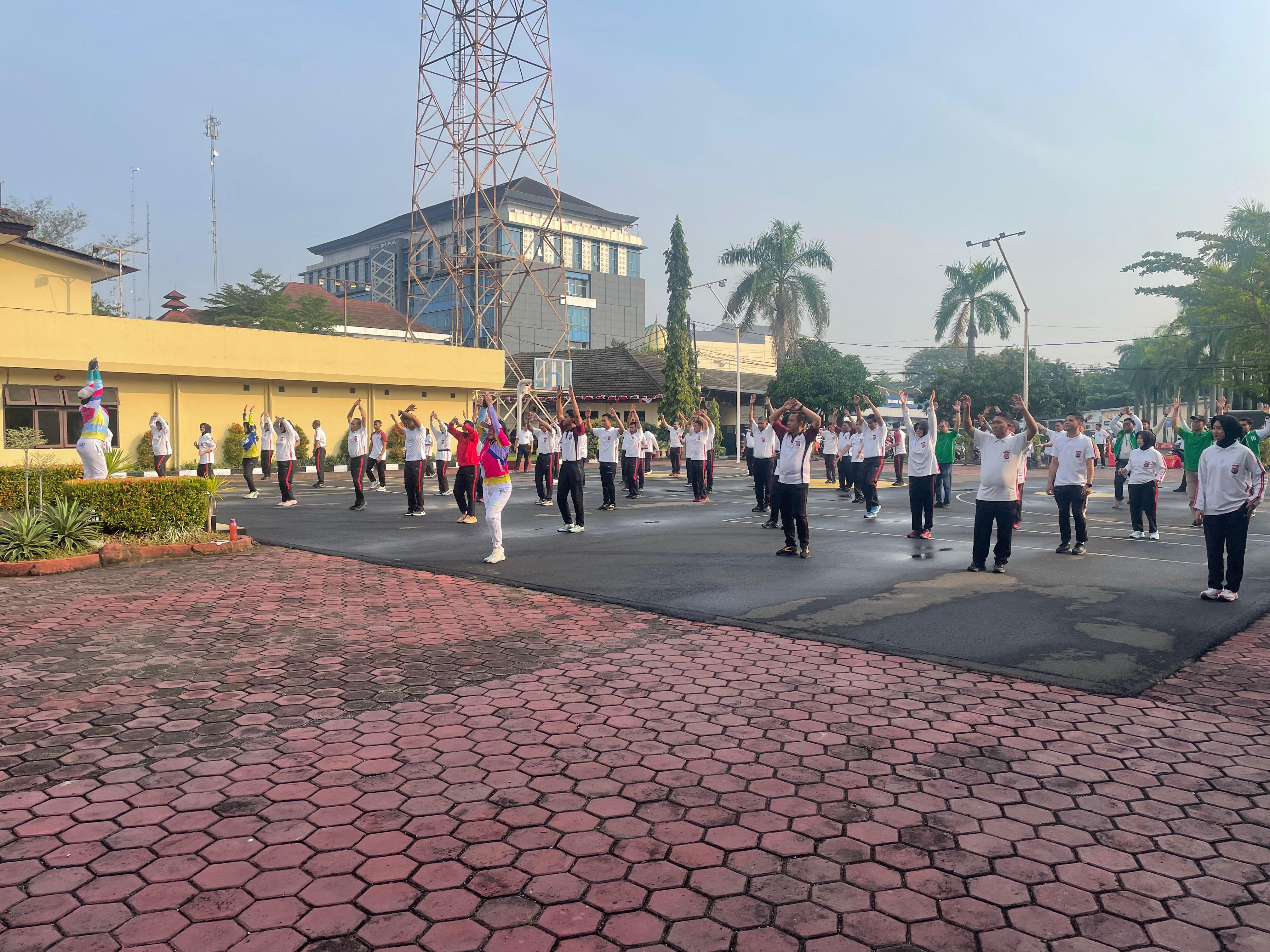 Cilegon, Jum'at (13/11/25)  Polres Cilegon kembali melaksanakan olahraga rutin setiap hari Jumat sebagai upaya untuk meningkatkan kesehatan dan kekompakan personel. Kegiatan ini dilaksanakan di lapangan apel Polres Cilegon dan diikuti oleh seluruh personel Polres Cilegon.
