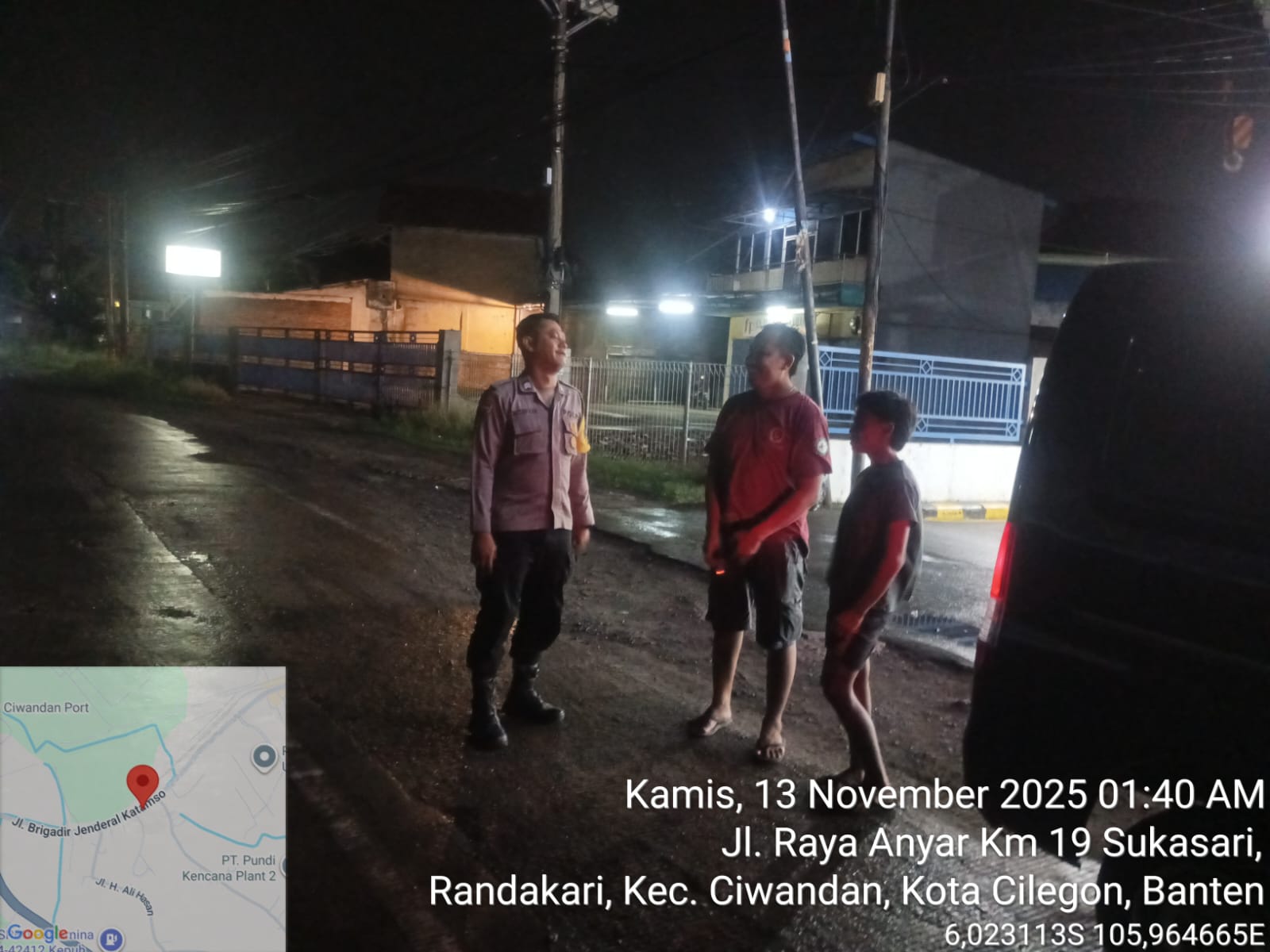 Cilegon - Polsek Ciwandan Polres Cilegon Polda Banten kembali menunjukkan komitmennya dalam menciptakan keamanan dan ketertiban masyarakat (kamtibmas) yang kondusif melalui Kegiatan Patroli Malam, Kegiatan ini dilakukan secara rutin dengan berkeliling di daerah hukum Polsek Ciwandan, Kamis (13/11/2025).