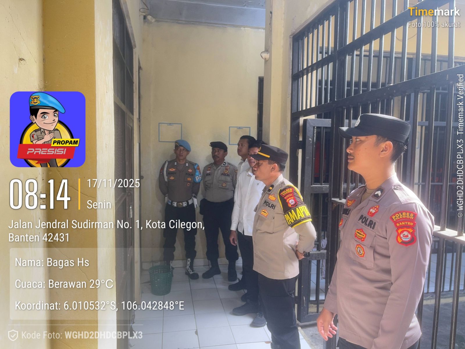 Cilegon,Personel piket Satreskrim Polres Cilegon Polda Banten beserta piket fungsi lainya melakukan pengecekan jumlah perbaikan dan ruang di setiap kamar rutan di polres cilegon. Kegiatan ini bertujuan agar terus memonitor keadaan para keadilan di rutan polres cilegon dan menghindari hal-hal yang tidak diinginkan serta memeriksa kekuatan setiap ruangan. Senin (17/11/2025).