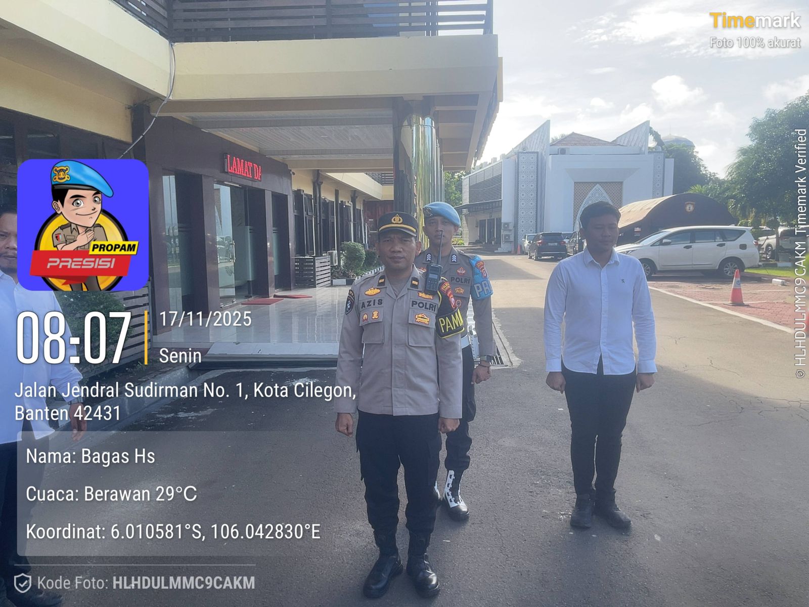 Cilegon, personel Satreskrim Polres Cilegon Polda Banten melaksanakan piket di penjagaan pintu masuk Polres Cilegon Polda Banten untuk memastikan mako Polres Cilegon dalam keadaan aman dan nyaman dalam melayani Masyarakat tanpa adanya gangguan kejahatan. Senin (17/11/2025).