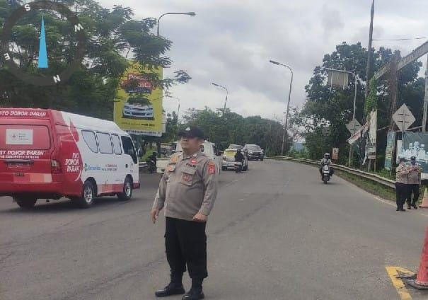 Cegah kemacetan lalu lintas , personil polsek cibeber laksanakan pengaturan