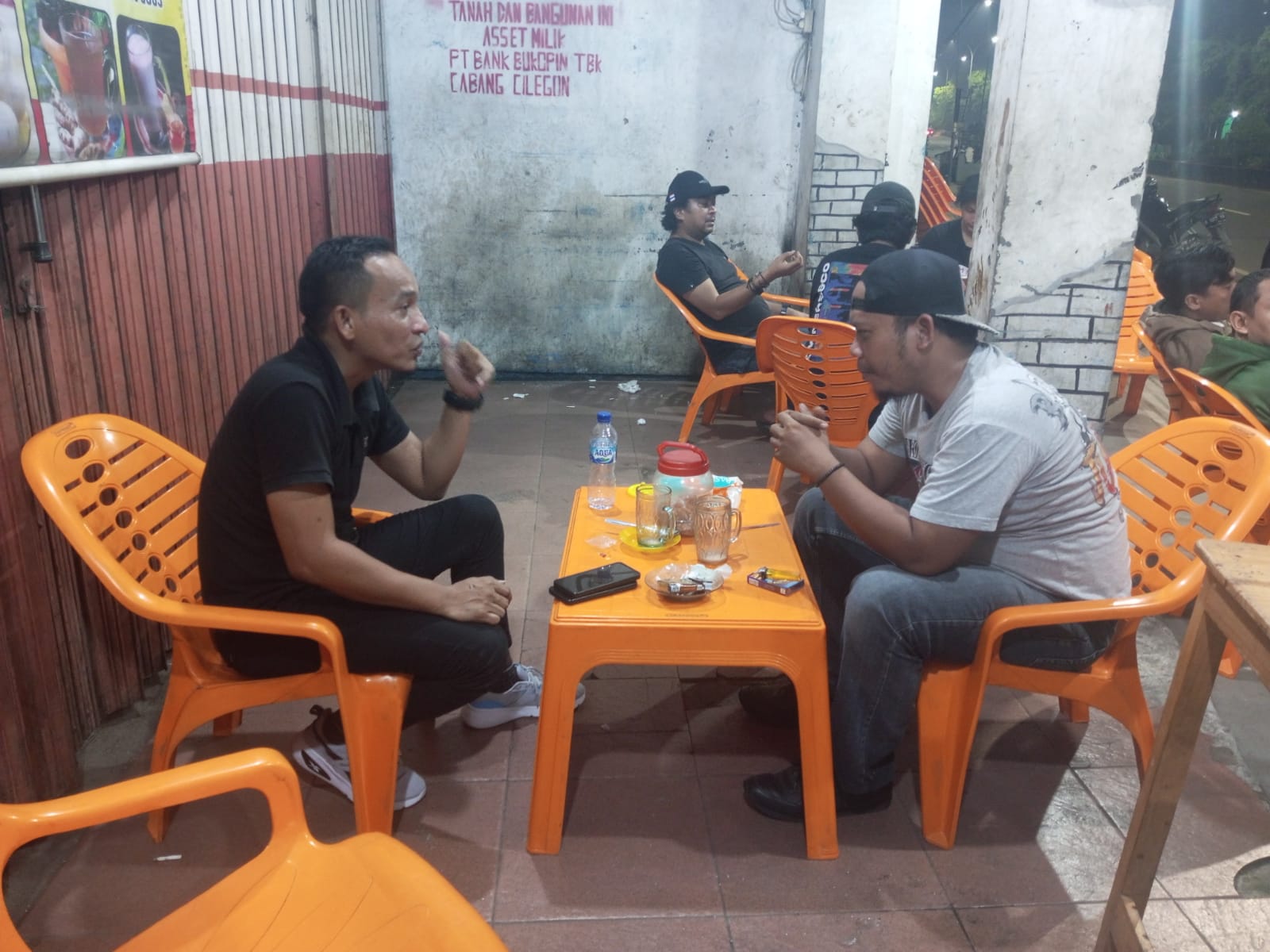 Personil sat intelkam melakukan koordinasi dengan tokoh pemuda kec. Puloampel kabupaten serang.