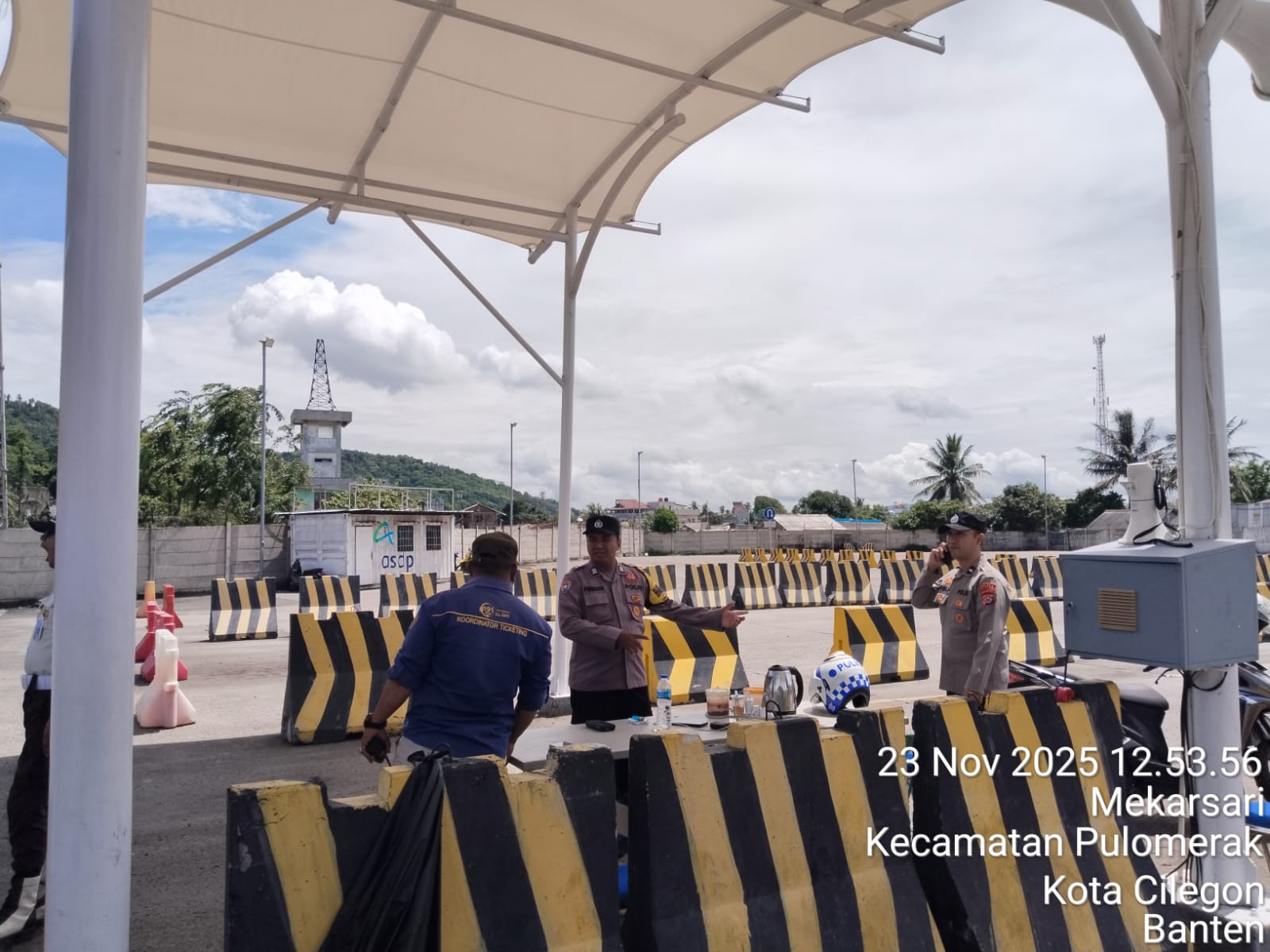 Cilegon - Personel Polsek Kskp Merak Polres Cilegon Polda Banten melaksanakan sambang dan patroli kawasan pelabuhan merak dalam rangka menjaga Harkamtibmas di Kawasan Pelabuhan Merak, Minggu (23/11/2025).