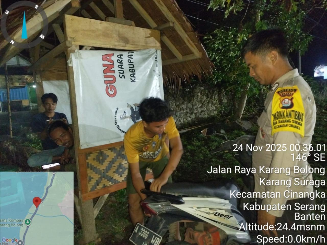 *Polres Cilegon* – Dalam Rangka Pencegahan Kejahatan Jalanan dan Memelihara situasi keamanan dan menjaga serta memberikan rasa aman dan nyaman di masyarakat,Salah satu upaya untuk mewujudkan hal tersebut sebagaimana yang dilakukan oleh Personil Polsek Cinangka Polres Cilegon Polda Banten melaksanakan giat patroli blue light malam hari hingga menjelang pagi, Senin (24/11/2025).